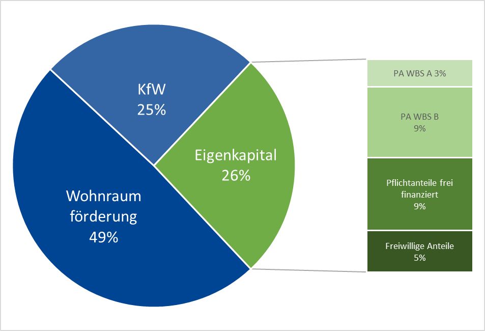 In unserem Projekt wollen wir ca. 60 % der Wohnungen für Menschen mit Anspruch auf geförderten Wohnraum (WBS) schaffen.